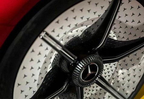 轮圈同样是中心孔单螺栓,六个轮辐之间都被填满了,但又加入了丰富的星辉镂空,起到通风的效果。
