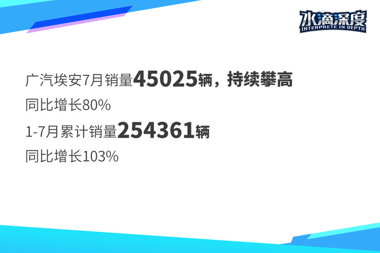 广汽埃安7月销量为45,025辆,再创历史新高,相比去年同期增长80%,不过销量相比上个月仅多出12辆。1-7月累计销量为254,361辆,同比增长103%。埃安旗下的昊铂品牌的首款量产车型昊铂GT实现了交付即上量,月销量为2,011辆。