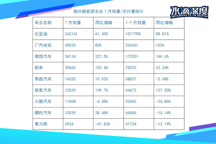 7月车企销量出炉!比亚迪领跑新能源,新势力纷纷破万