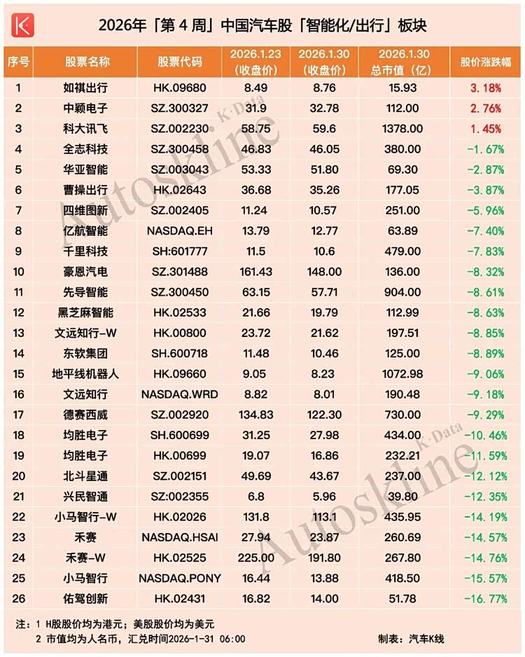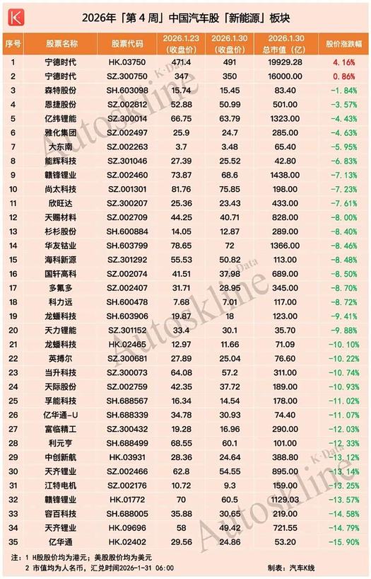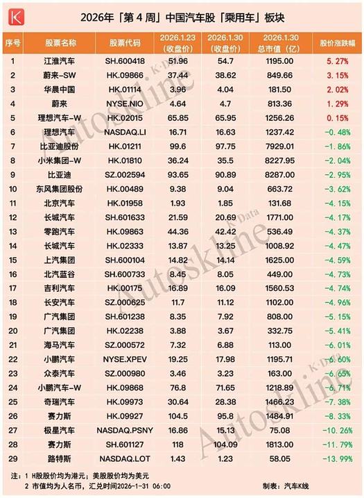 由于业界预期国内汽车销量将下跌近三成,随着2026年1月最后一个交易周收官,中国汽车业上市公司并未将“开门红”延续,反而遭遇了一场寒流。