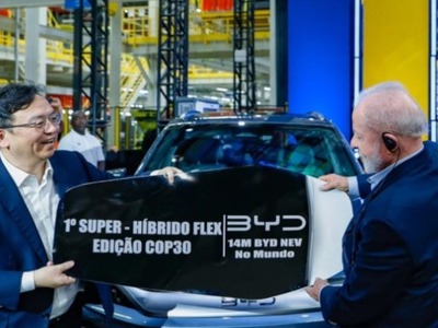 比亚迪第1400万辆新能源车在巴西工厂下线,巴西总统卢拉成为车主
