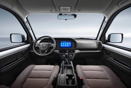 新车采用了上下格栅连通的大嘴式前脸设计,格栅经过了黑化处理,两侧头灯与上格栅融汇一体,拉伸了横向视觉宽度。雾灯区域也采用了黑色装饰,提升了辨识度。黑色外后视镜与黑色车门把手的配备,在节省成本的同时,也能起到一定的防剐蹭效果,符合微卡的车型定位。此外,新车装配了195/70 R15大尺寸轮胎。