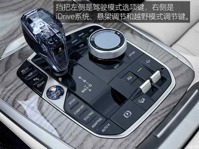 内饰方面,宝马X7量产版基本延用概念车的内饰布局,中控台遵循宝马“以驾驶者为中心”的原则,12.3英寸中控液晶屏搭载iDrive7.0系统,依旧支持语音、触摸和手势多种操控方式。此外,全新造型的玻璃材质电子挡把是车内的一大亮点,提升了整体的奢华质感。