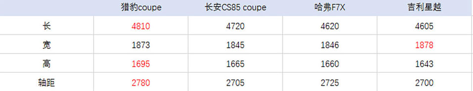 新车的长宽高为4825x1908x1694mm 轴距为2780mm 对比其他国产coupe车型还是有着明显的优势,从尺寸上来看可以看出新车是定位中型SUV。