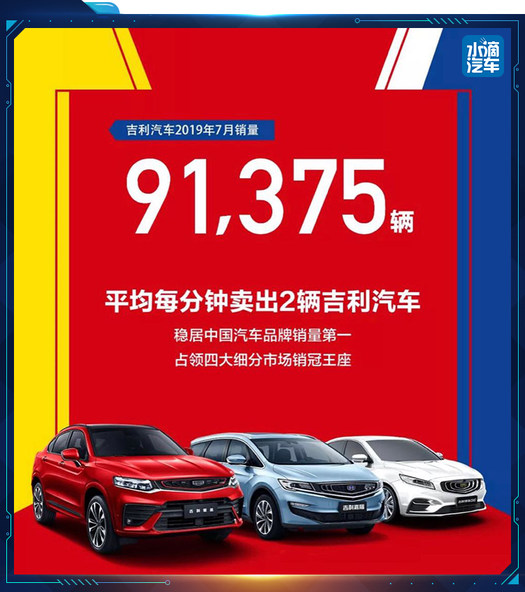 就在发布会当天,吉利公布了其7月销量大榜:2019年7月吉利销量逆势增长达91375辆,其中,帝豪家族贡献销量25867辆,在自主品牌轿车当中,帝豪稳居销冠。而从1-7月累计销量来看,吉利的新能源及电气化车型总销量为62076辆,同比增长181%。