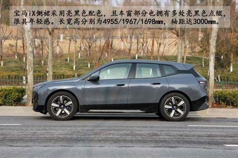 宝马iX侧裙采用亮黑色配色,降低车侧的视觉高度,且车窗部分也拥有多处亮黑色点缀,很具年轻感。隐藏式门把手和无框车门设计,大致就是宝马整个豪华车系未来的趋势所在。车身尺寸,长宽高分别为4955/1967/1698mm,轴距达3000mm。