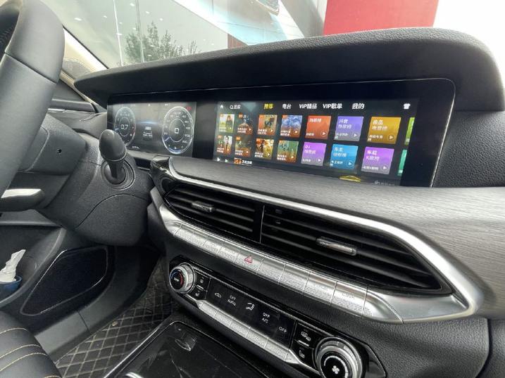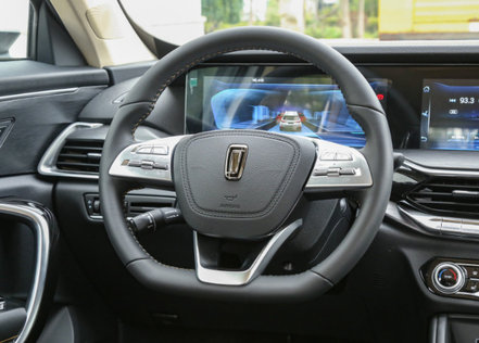 其方向盘是真皮NAPPA材质,上面按键功能一目了然;仪表盘与中控屏组成的双联屏虽然谈不上酷炫,日常使用实用性已经够强了。