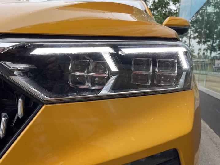 大灯设计也采用了水晶切割造型,与六边形进气格栅、雨滴式点阵布局、悬浮式车顶、切割式刀锋工艺融为一体。大灯灯腔中内置八个LED光源,识别度很高且很有层次感,看着很威风,试驾车高配车型,还配备了自适应远光、自动头灯等功能。