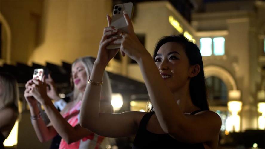 当晚,哈利法塔人头攒动,随着LED屏幕的亮起,现场观众伴着屏幕数字的变化齐声倒数。当一道耀眼的蓝色光束腾空而起,哈利法塔塔身被状如烟火的绚丽光芒铺满,捷途X70 PLUS和DASHING也随之耀目登场,极富科技感的产品卖点展现,瞬间吸引了众多行人的驻足围观,有不少人纷纷举起手机,记录下现场的精彩瞬间。