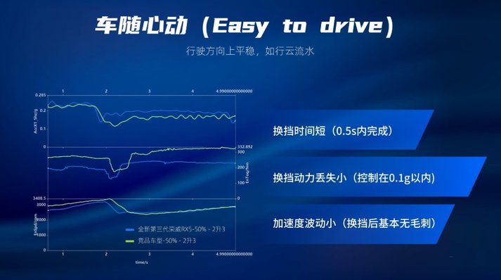 在动力方面,全新第三代荣威RX5将会搭载一台,上汽蓝芯动力GS61 1.5T VTGI缸内直喷涡轮增压发动机,最大马力188匹,最大扭矩300牛·米,匹配全新一代DM21 PLUS 7速湿式双离合变速箱,“双十佳”黄金动力组合搭配,可以让动力在0.5秒内随叫随到,1秒内加速度达到0.2g,换挡也将在0.5秒内快速且平顺地完成操作,在用户常用的30%-60%油门开合度下,能保证充足的功率。
