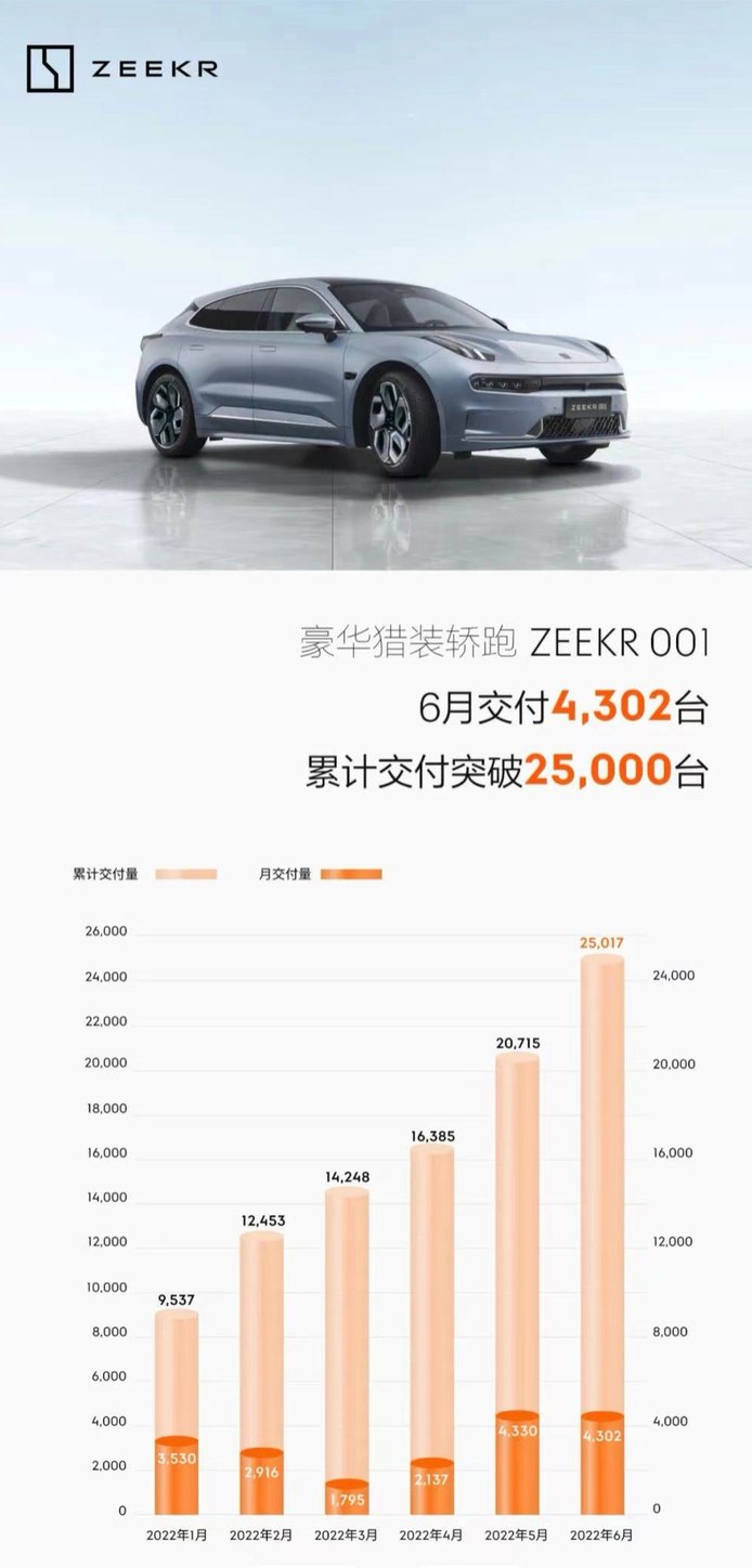 昨天率先公布交付成绩的,不是“蔚小理”们,而是极氪。这家车企截至6月30日中午12时,交付量正式突破了2.5万辆。