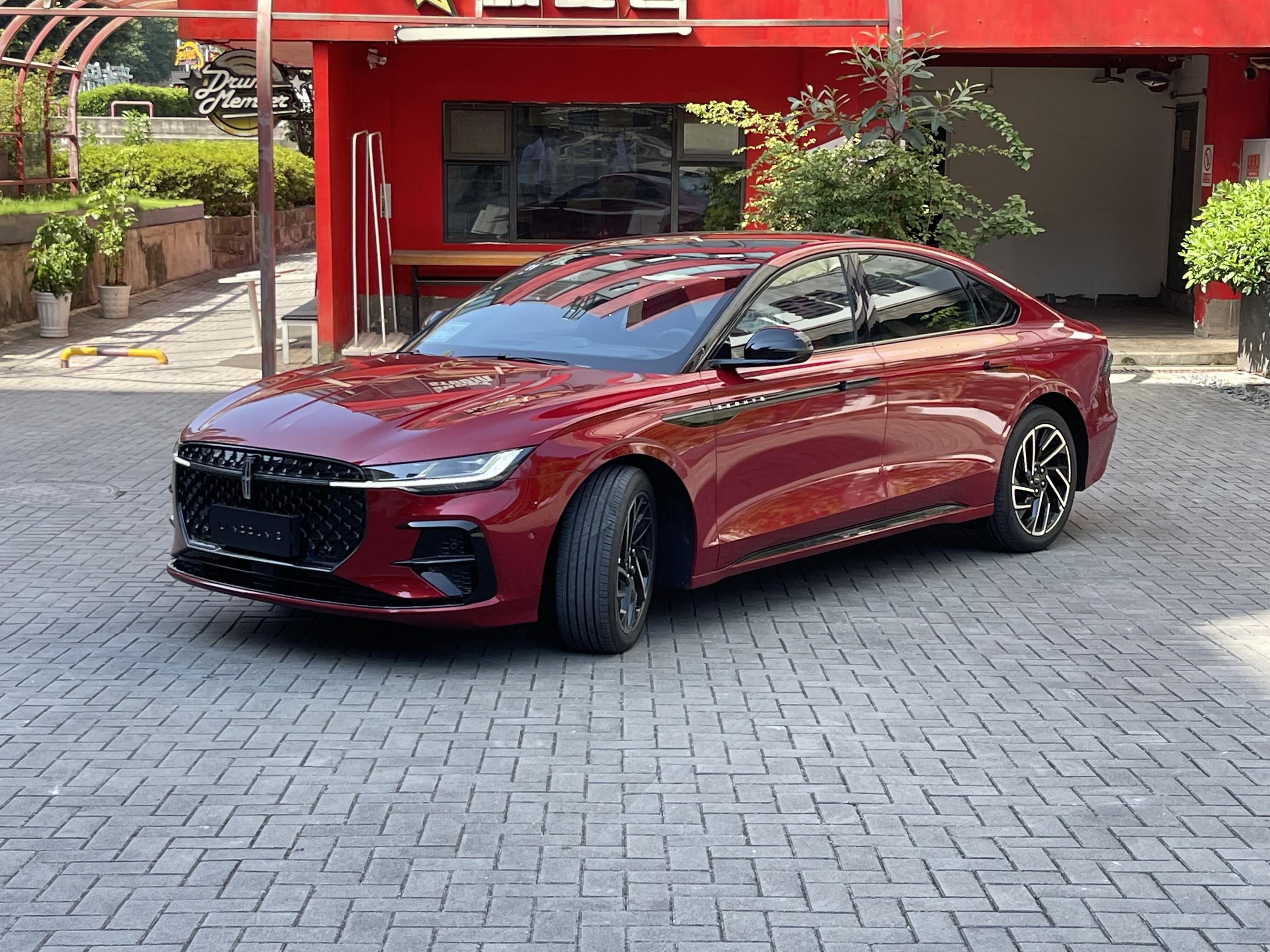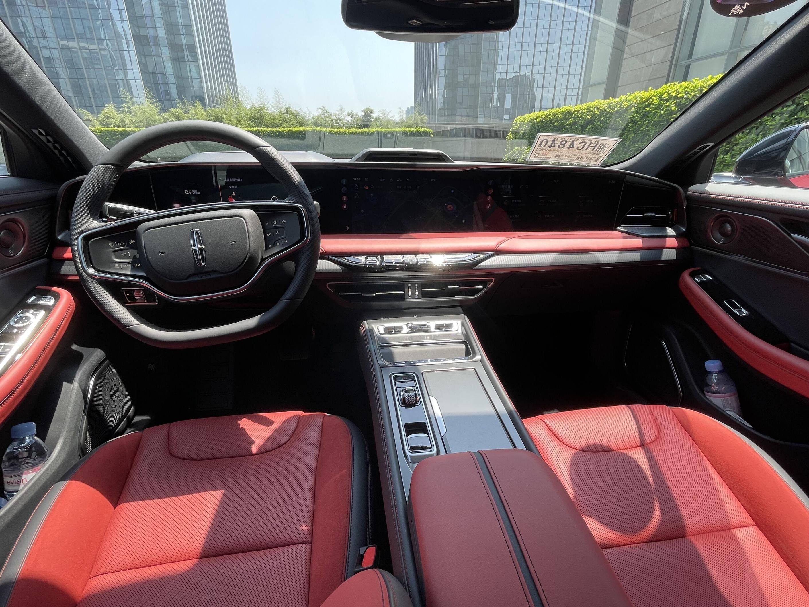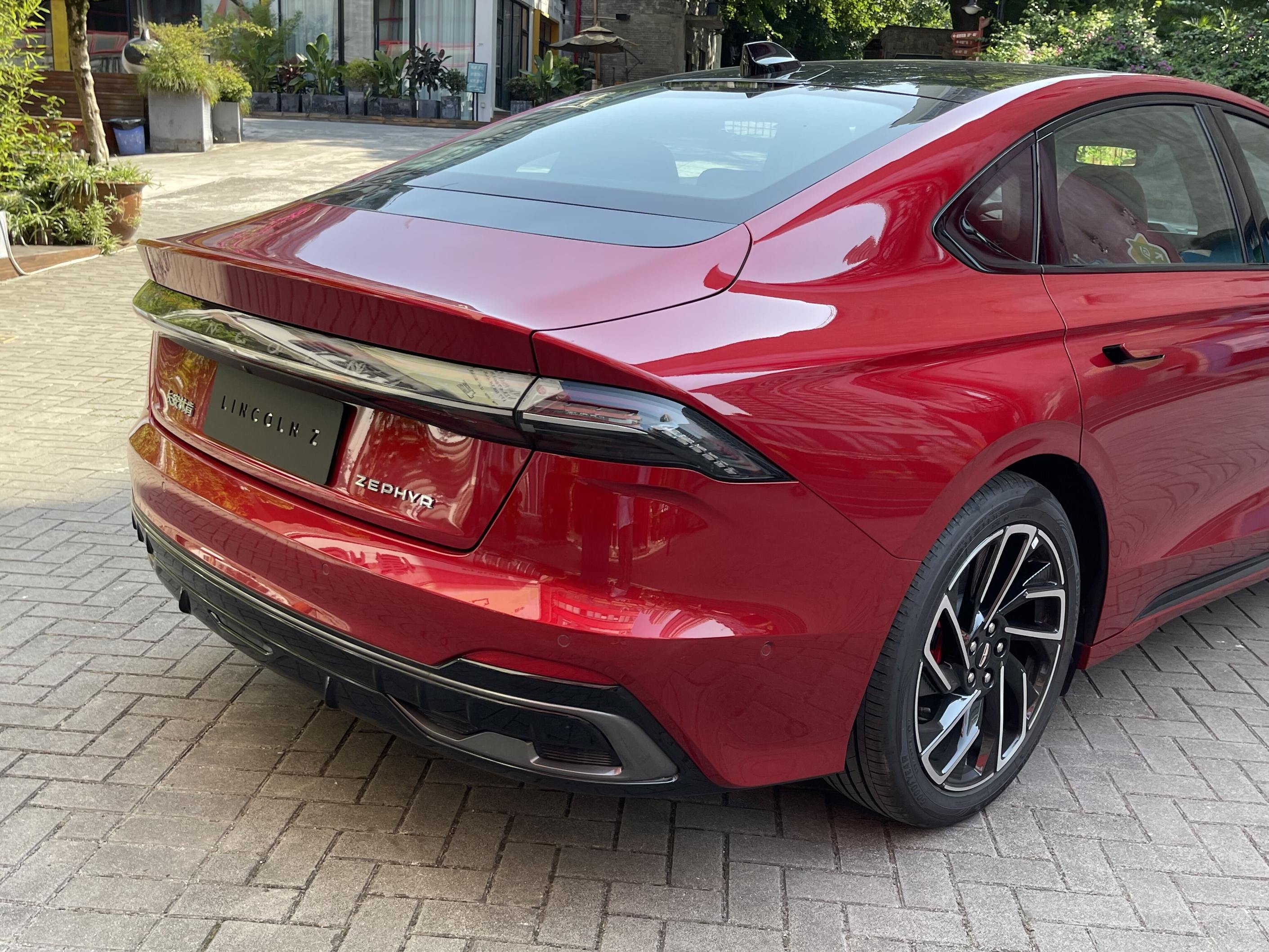 试驾前笔者说说对林肯Z颜值的几个印象,首先林肯Z提供双外观设计,主要体现在前脸保险杠处,笔者试驾的是“i酷”,比“i享”要更运动一些;此外,前进气格栅处可以发光的林肯LOGO,配合贯穿式前大灯组,让这款车在夜间更引人注目;隐藏式门把手符合时代潮流,很有高级质感,讨人喜欢;第四,“i酷”的轮毂样式很运动,还有红色刹车钳,也是加分项;其尾部设计流线,很有轿跑车气势,贯穿式尾灯在夜晚的视觉效果也相当出色。