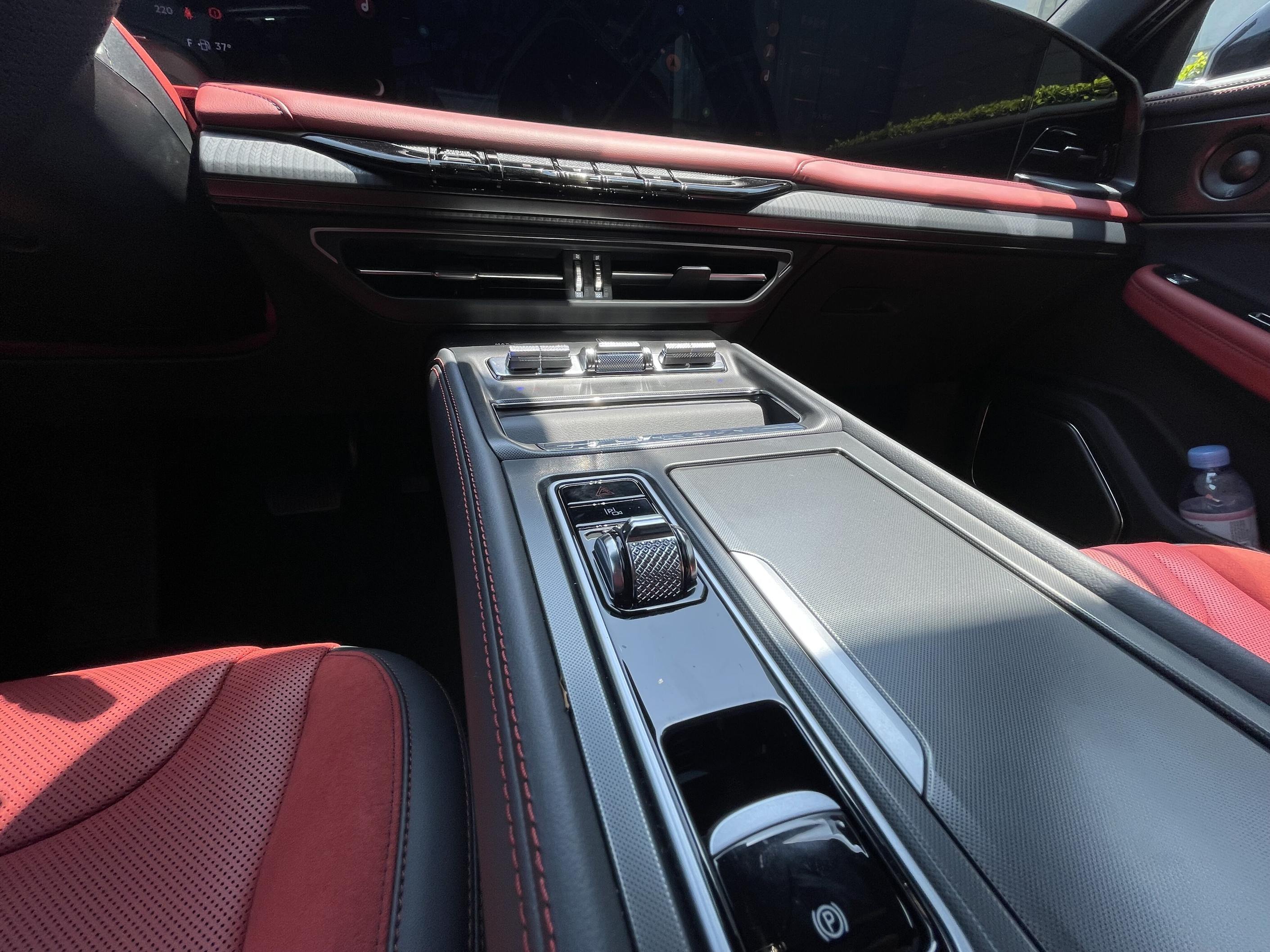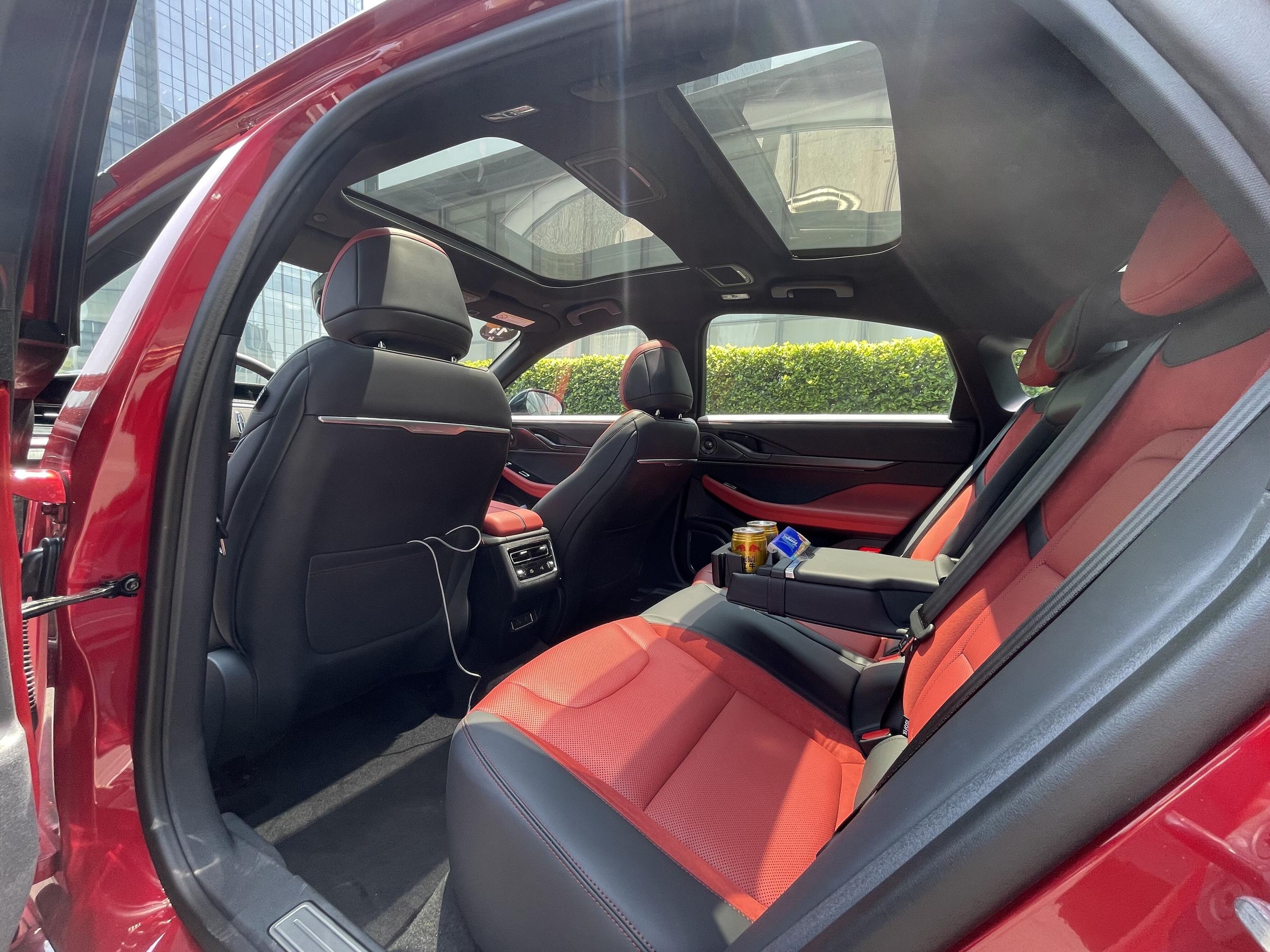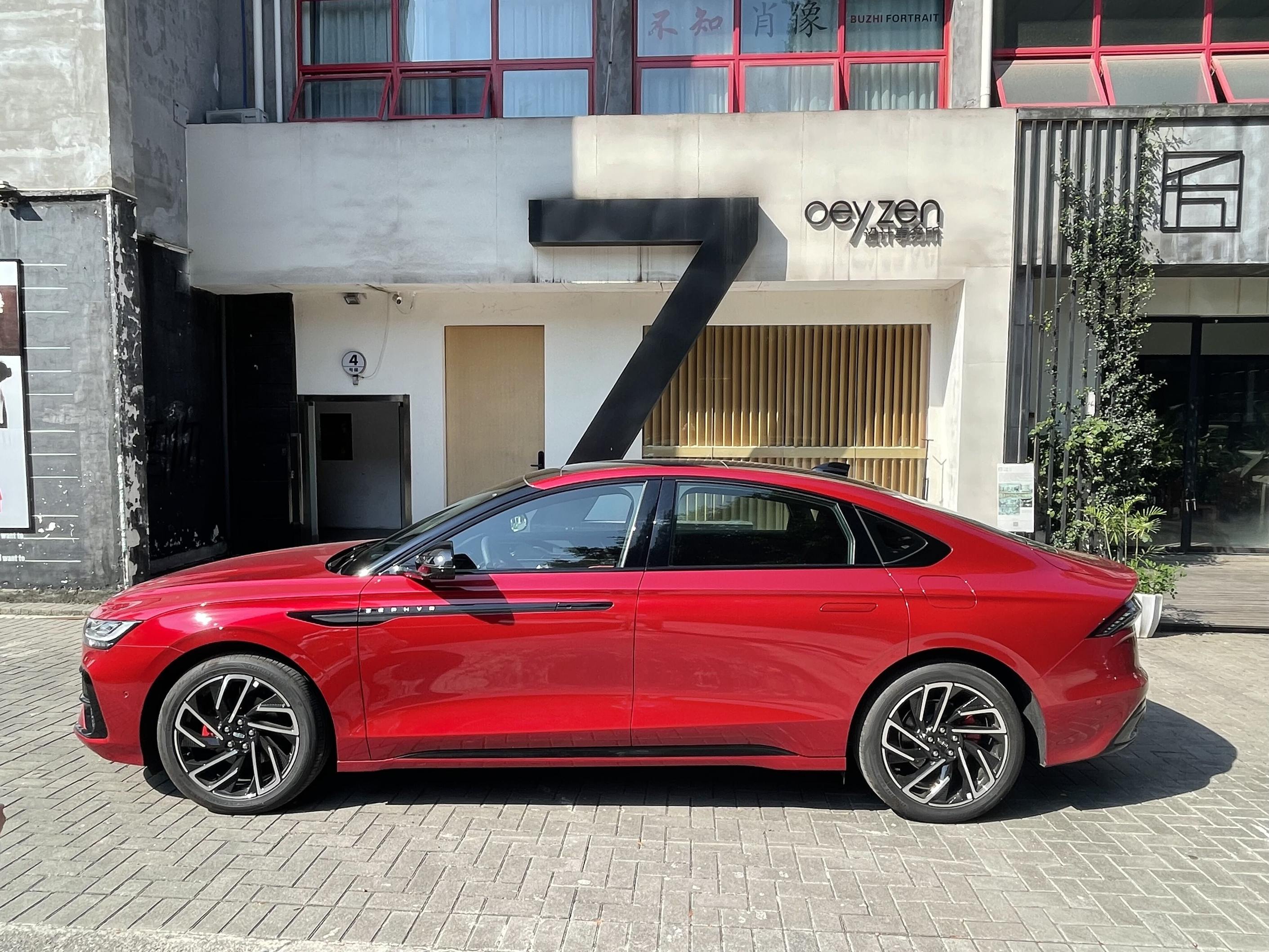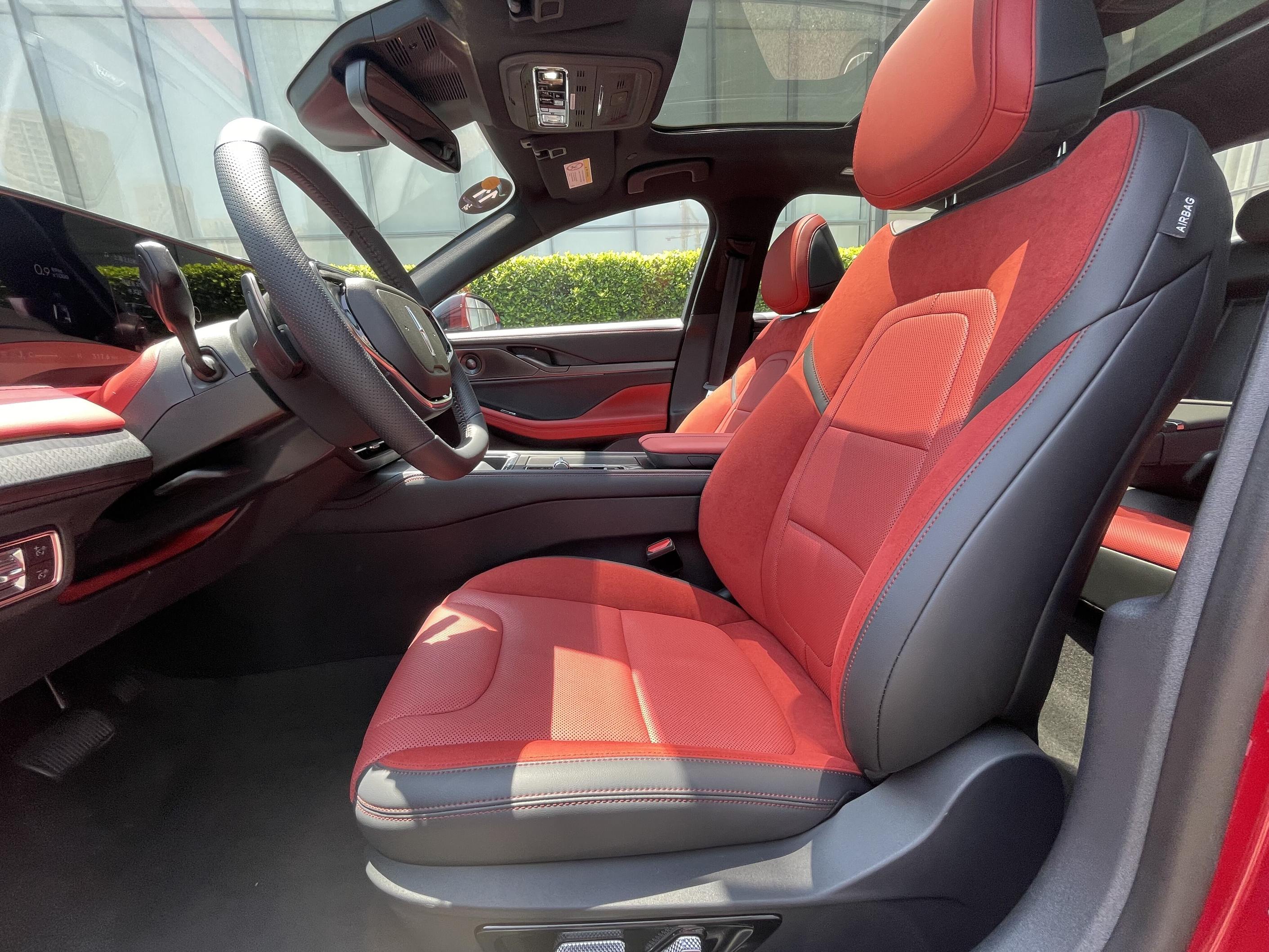 试驾前笔者说说对林肯Z颜值的几个印象,首先林肯Z提供双外观设计,主要体现在前脸保险杠处,笔者试驾的是“i酷”,比“i享”要更运动一些;此外,前进气格栅处可以发光的林肯LOGO,配合贯穿式前大灯组,让这款车在夜间更引人注目;隐藏式门把手符合时代潮流,很有高级质感,讨人喜欢;第四,“i酷”的轮毂样式很运动,还有红色刹车钳,也是加分项;其尾部设计流线,很有轿跑车气势,贯穿式尾灯在夜晚的视觉效果也相当出色。