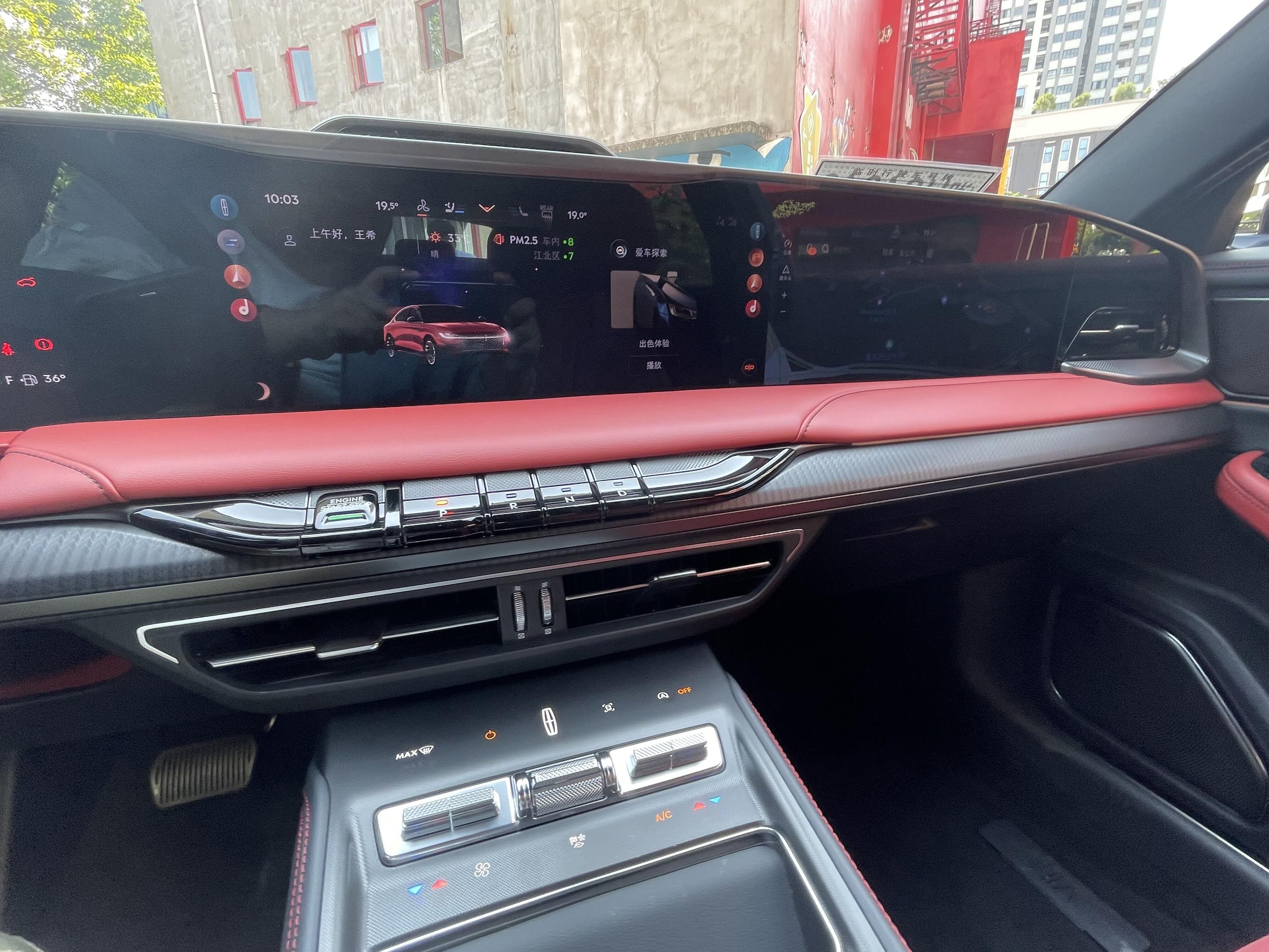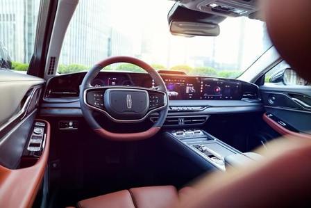 林肯Z的三联屏连加起来足足有1.1米,其实这个三联屏是由12.3英寸、27英寸的两块屏幕组成,连在一起就显得特别长,而且支持4k高清分辨率。
