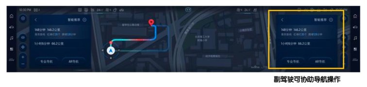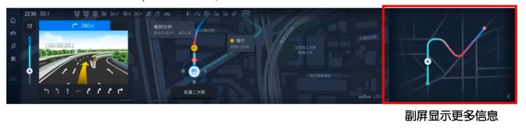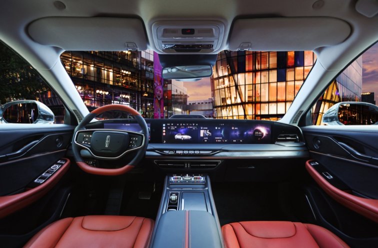 座舱内最吸睛的当属这块超大高清全景屏,不要以为它是多块独立屏幕连接在一起,为了视觉上给人带来冲击,实际上除了左侧12.3英寸液晶仪表显示屏是独立的,右侧全部是一个整体,尺寸达到了27英寸,虑到驾驶员操控便捷性,这块超大的中控屏还可以进行分区控制,比如副驾驶可以单独控制面前一小块区域,不影响中间区域的功能。在人机交互上,林肯Z做到了极高的科技感,UI采用星际设计理念,卡片式操作,支持多种手势,特别是使用导航功能时,可以将主控屏的导航显示直接拖拽到仪表盘中,方便驾驶员更直观的查看,不占用主屏空间,这样副驾驶可以享受其他娱乐功能。