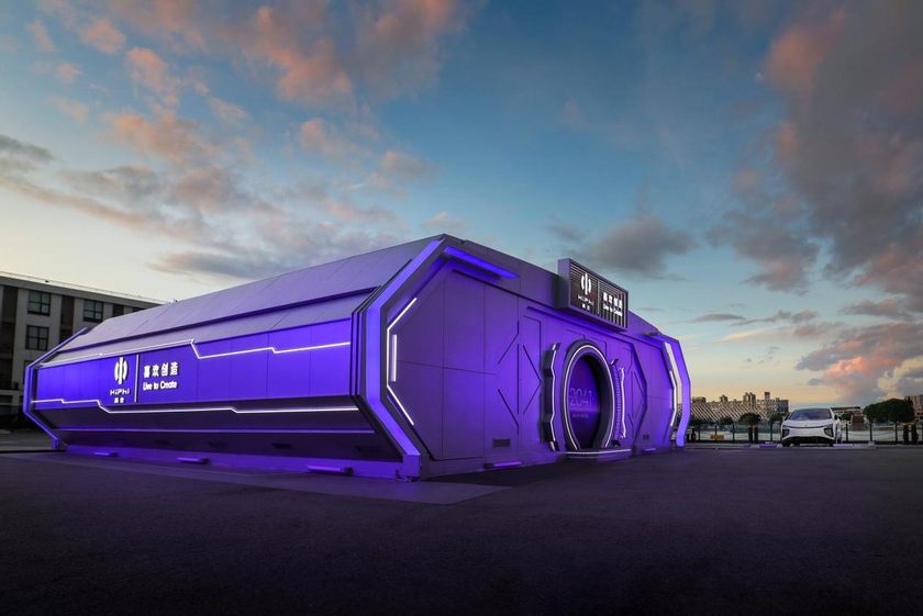 高合汽车带来的太空舱造型空间已经成为全新的网红打卡点。太空舱空间有着极其酷炫的造型,外观设计以2041超空间引擎为设计灵感,银灰色太空材质和星河紫品牌色能够充分融合,犹如一艘太空飞船。