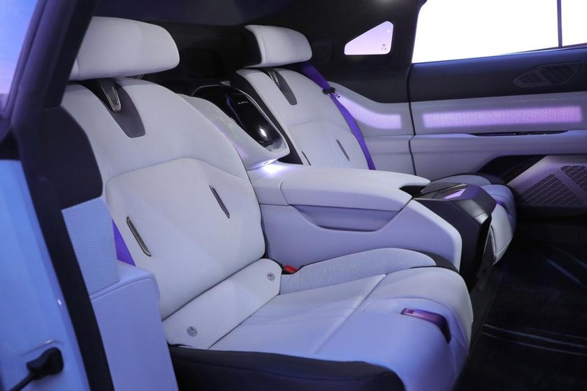 来到车内,高合HiPhi Z的内饰设计就是极度奢华,大量NAPPA真皮、麂皮材质和氛围灯都有效凸显高端气息。另外,前排座椅还支持14向可调,以及带有可OTA的按摩功能,而后排茧式座椅带可调头枕,给用户带来轻奢享受。但遗憾的是,现场无法对座椅舒适性进行实测。