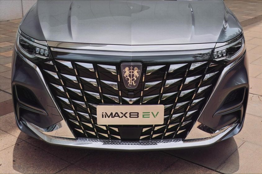 作为荣威 iMAX8 的 EV 车型,造型上基本沿用了燃油版的风格,巨大的 “龙鳞黑钻” 进气格栅搭配光翼贯穿式的前大灯显得格外有冲击力,还有一个有意思的就是,它的充电口就隐藏在它正中央的车标下。