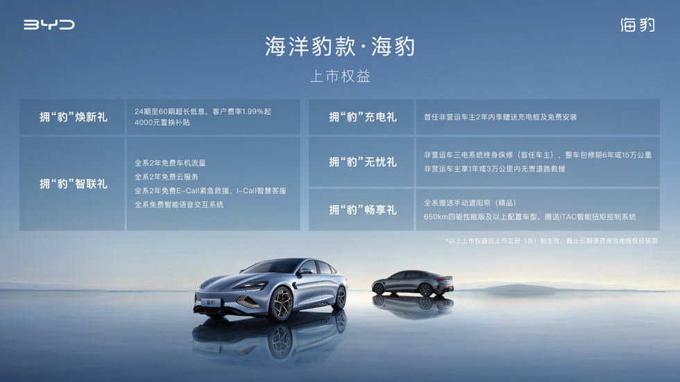 除了价格带来的惊喜,海豹还升级了产品配置,海豹650km四驱性能版的用户可通过OTA远程升级免费获得iTAC智能扭矩分配系统,让普通用户轻松晋级高能玩家;并且对于大家关注的全景天幕隔热问题,海豹将全系赠送遮阳帘,给用户更贴心的用车体验。