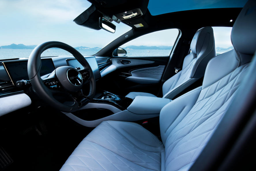 基于更年轻、更新能源化的“海洋美学”的设计理念,海豹传承了Ocean X概念车的精髓,造型犀利,车身姿态低趴,具有极致的运动感。短前后悬、长轴距的完美车身比例,让人一眼就可以感受到强烈的运动气息和优雅气质。海豹的内饰风格与外观高度统一,轻盈流畅的曲线轮廓,形式多样的海洋元素,营造出柔和灵动、充满活力的整体氛围。