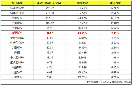 虽然已到8月,但上半年的汽车细分市场累计销量最近才陆续出炉。由于三四月份的局部静止,不用说大部分细分市场销量都同比下滑,比如份额最大的紧凑型轿车同比跌了17.4%,紧凑型SUV也跌了14.4%。反而是微型车表现十分抢眼,以同比增长54%的速度跑赢全场,似乎又感受到当年QQ风靡的年代回来了。下面看看上半年卖得最好的是哪10款微型车。