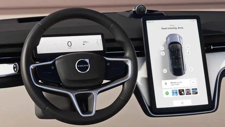 在内饰上,沃尔沃EX90采用极简化的设计。中心即是一块大中控屏幕,不同的是,EX90采用竖屏的设计,搭配上与三幅式方向盘相连的悬浮液晶仪表盘,可以显示与驾驶相关的信息,比如:速度、导航、续航里程等。座舱内部取消了大量的实体按键,看上去科技感十足。除此之外,EX90还采用贯穿式的空调出风口,还采用金属拉丝增添整个车内部的高级感。整个中控区域造型精简,虽然没有太强的层次感,但是却胜在简洁明朗,将“less is more”贯彻的彻彻底底。