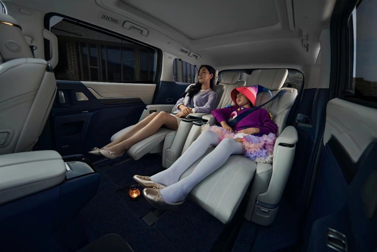 当然最重点的还是四座版的第二排设计,星空顶、氛围灯、一键升降幕墙、带压缩机制冷的车载冰箱、等奢华配置不用多说,拥有智能交互体验的160度云感座椅更是让人冲动下单的部分。