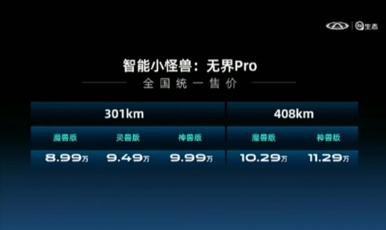 奇瑞新能源无界Pro正式上市,8.99万元起