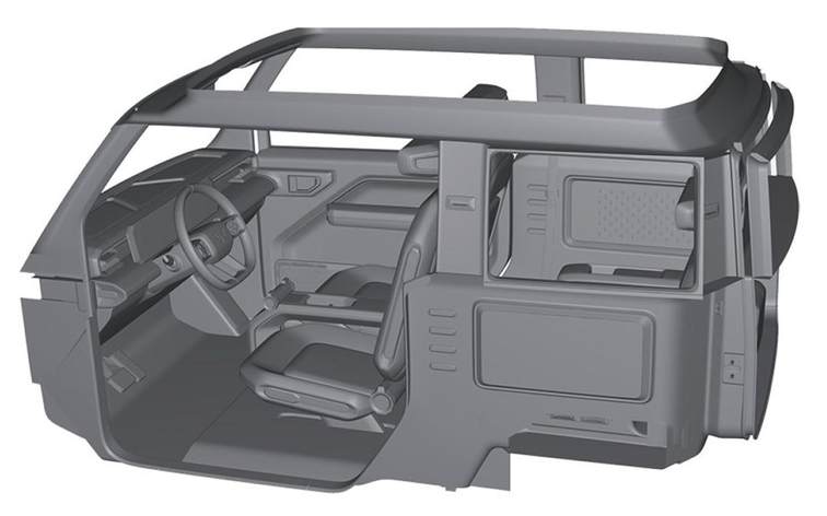 根据内饰专利图显示,棱角分明的贯通式中控台也很显硬朗,并配备了一体式双联屏设计以及平底式多功能方向盘,而镂空的中央扶手区域,以及类似卷轴式的电子档把十分新颖,还采用了一体式运动座椅。车内采用2+2座椅布局,但受限于车身尺寸,车厢空间较为紧凑。