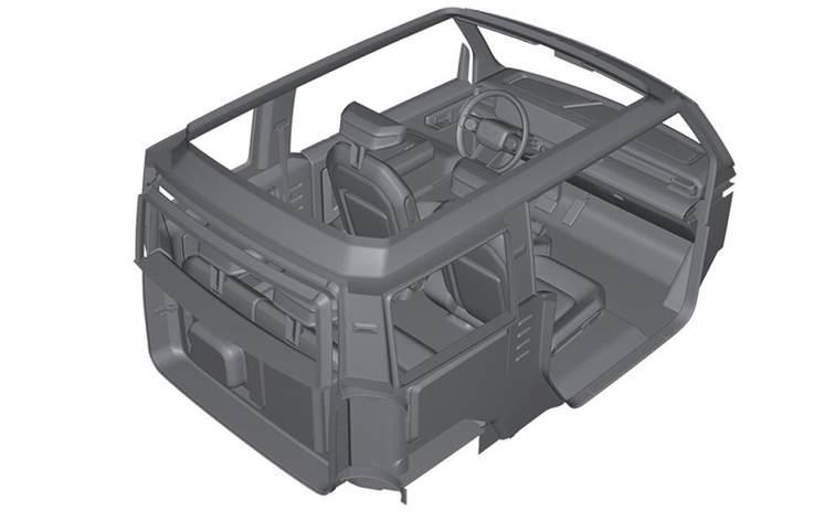 平直的尾部造型配合侧开尾门,继续强调越野属性,而突出的后包围给人的感觉也非常粗犷。另外还可以看到,新车具备较高的离地间隙、较大的接近角和离去角,这也意味着车辆将会拥有较强的通过能力。而环形胶囊状的立体尾灯,进一步提升了整车的玩乐潮品形象。