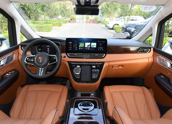 内饰方面,车辆整体的设计彰显了豪华感,全系标配7英寸液晶仪表和16.2英寸中控屏为车内带来不错的科技感。空间上得益于HQ9超过5.2米的长度和3.2米的轴距让车内的空间十分宽敞。座椅为2+2+3布局,其第二排采用了两个航空座椅,支持多向电动调节,并且前后调节幅度比较大,第三排座椅的空间也相当不错,即使久坐也不会有什么不适,唯一遗憾的是为了保证第二排横向空间,其中央过道不算宽敞,这就会影响第三排乘客的进出。