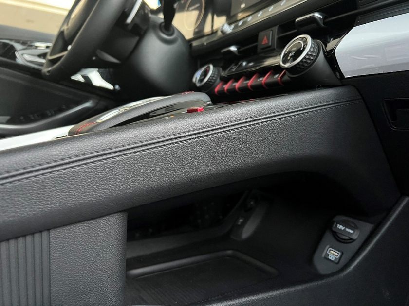 特别值得一提的是,由于按键式电子换挡机构的运用,使得新车中控地台下方不再被传统的机械结构所占据,而是构建出一个足够可观的储物空间,在运动氛围拉满的基础上,进一步增加车内日常使用的便利性。