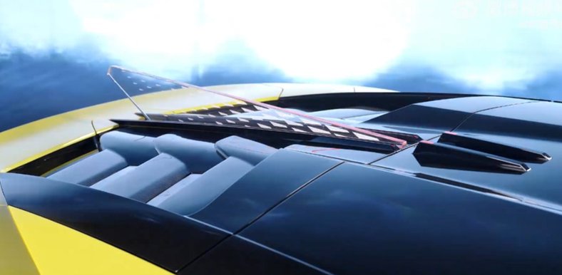 虽然仰望U9是一台纯电超跑车,但新车还是保留了超级跑车上常用的中置发动机舱格栅,上方还加入了透明的鲨鱼鳍设计,能更好的降低风阻系数,提升新车加速性能。
