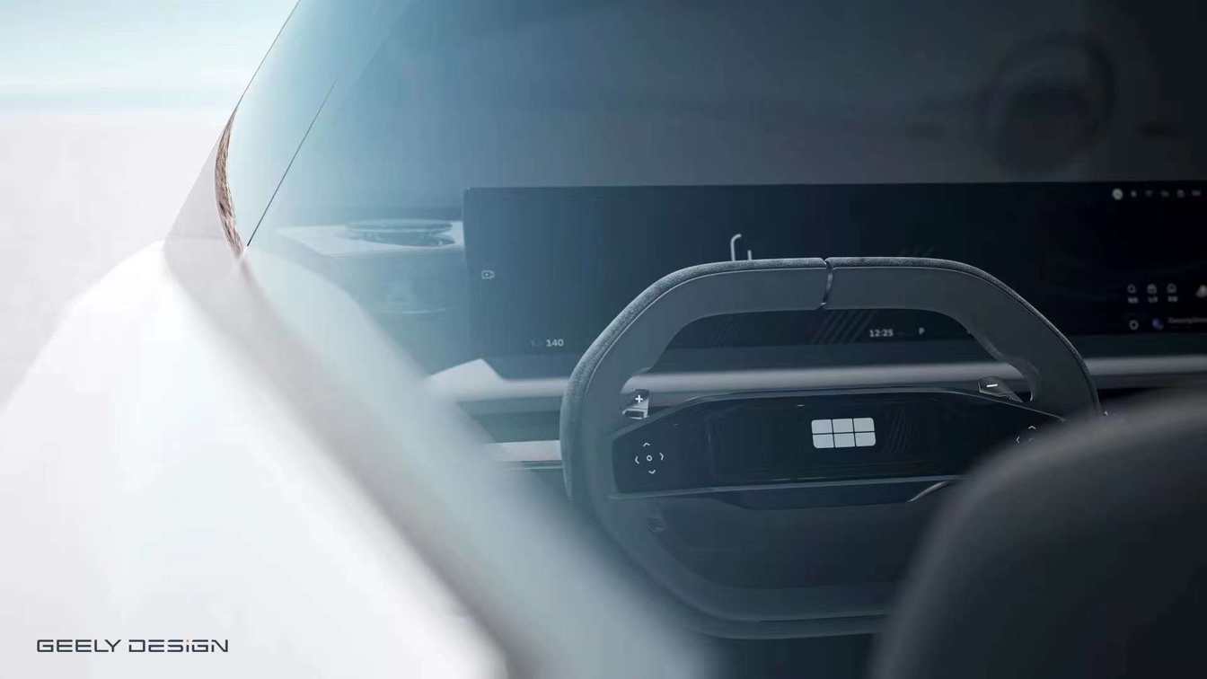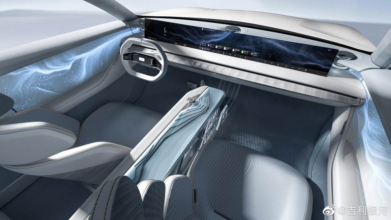 内饰方面,整体设计风格非常简洁,提供有双幅式平底多功能方向盘、贯穿了整个中控台的可收纳屏幕以及旋钮式电子换挡机构,中控台上还设计有触摸式的按键,用来控制一些常用的功能;两侧门板位置还设计有由柔性屏幕组成的“银河环幕”,进一步增强了科技感表现。