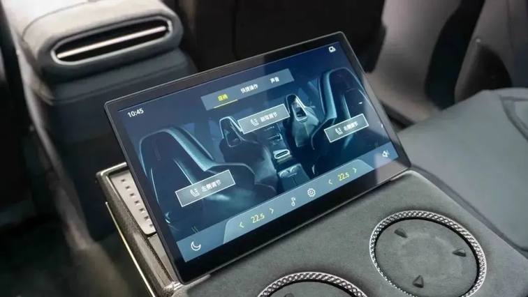 路特斯 Eletre 在座舱的智能硬件上也毫不吝啬,全车 5 个数字仪表:15.1 英寸的 OLED 材质中控屏幕、主副驾 12.6 英寸的 2 块带鱼屏、后排 8 英寸的可翻转屏幕、29 英寸的 AR—HUD。