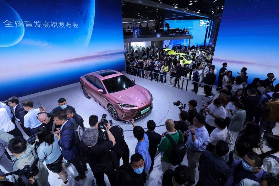 4月18日,比亚迪海洋网首款B+级超混轿车驱逐舰07在上海车展正式首发。驱逐舰07采用海洋美学设计理念,拥有越级大空间,搭载DM-i超级混动技术,价格区间为20万-25万元,新车将于今年三季度正式上市,是本届上海车展最受关注的插混轿车。