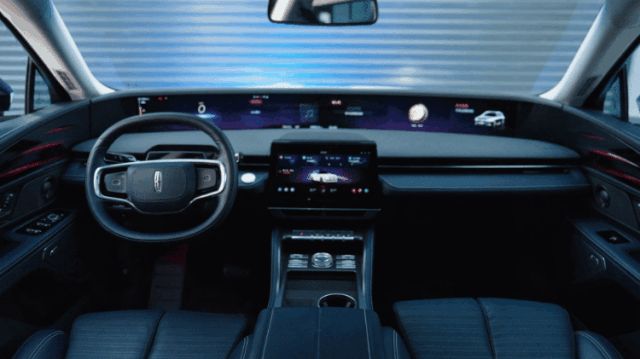 如果说两款车的外观只是风格和定位有所不同,座舱部分的设计则是彻底分道扬镳了。一坐进全新一代林肯航海家的车内,你就完全明白全新一代的含义了。同级独有的双23.6英寸环抱式高清4K屏,搭载的是旗舰级高通骁龙8155芯片,充分体现出新能源时代下的车机变革。