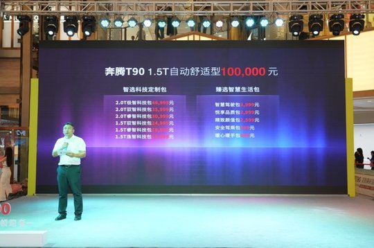 以创造需求为基准,以定制模式为基础,奔腾T90最终售价由10万元基础价加定制包、生活包价格组成。