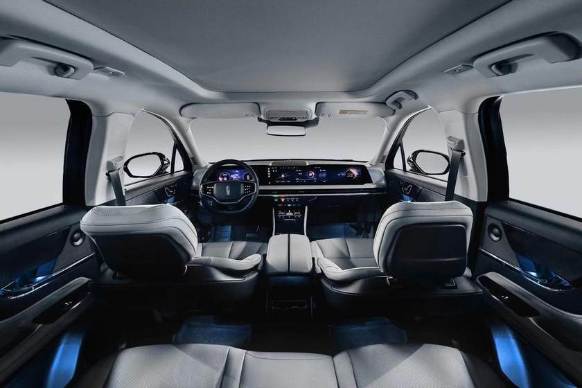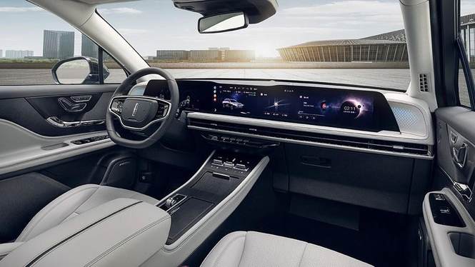 内饰是全新冒险家另一块重点优化的部分。其中新老车型最大的区别在于,老车型采用悬浮式中控屏,新车则采用贯穿式联屏。12.3英寸全数字仪表盘+27英寸贯穿式全景屏,采用4K UHD超高清分辨率。贯穿屏幕两侧的全新环境照明氛围灯从仪表饰板中透射出来,若隐若现更显高级。外观内饰的贯穿式设计元素的交相呼应,在视觉体验上形成一致性,无疑是经过了精心打磨。全新冒险家并没有将按键淘汰,而是将Lincoln Touch智控面板有序地安排在了仪表板下方,使中控区域布局更为简洁、现代。