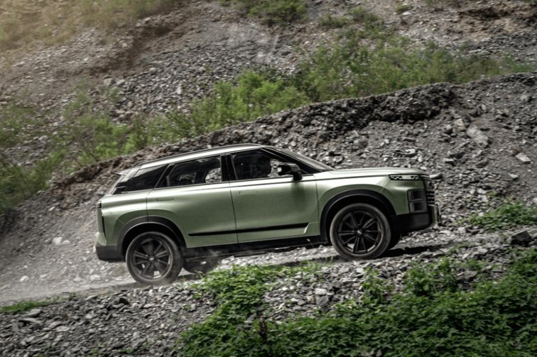 从侧面来看,探索06的车身线条比较硬朗,车顶线条自A柱后开始缓慢下滑并配备了车顶行李架,该车还采用了隐藏式车门把手。探索06车尾部分在视觉上显得非常敦实,搭载贯穿式尾灯组和前大灯相呼应。