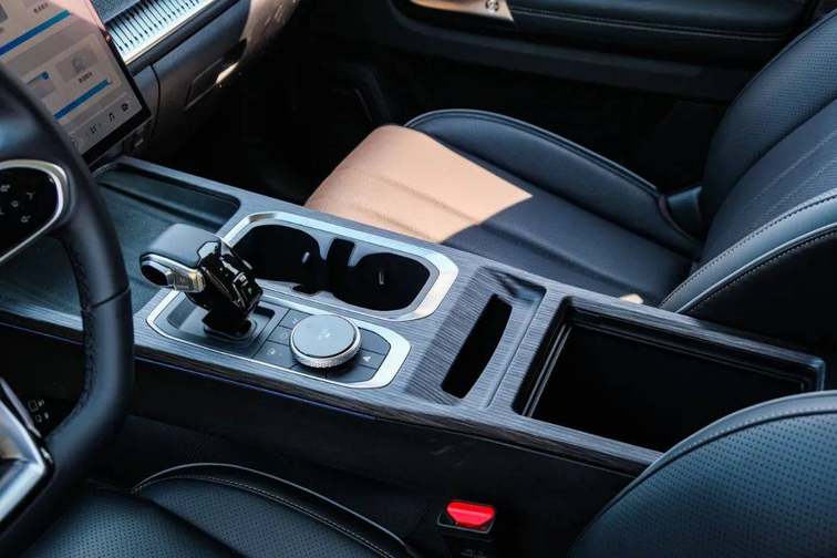 储物空间方面,挡把前方有两个带无线快充的手机放置区,换挡杆后面还有车载纸巾盒,门板内还有可以漏水的专用雨伞槽。而挡把下方也进行了镂空,有一块不错的储物槽,储物空间的表现还是比较优秀。