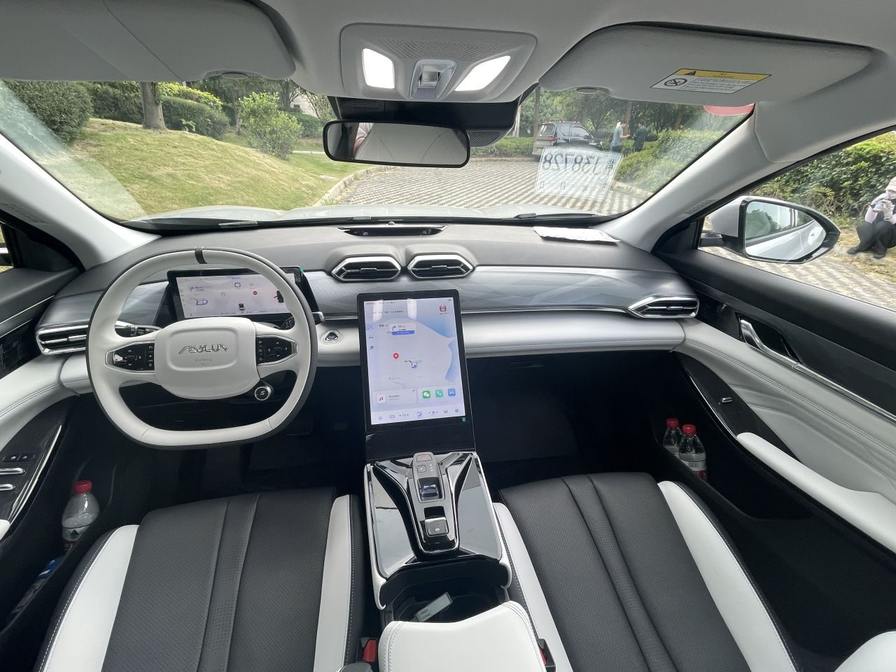 内饰采用双辐式方向盘,手感细腻配色干净简洁;采用同级最大13.2英寸竖屏中控,中控屏为10.25 英寸,换档杆样式也很新颖,整个内饰更有科技感,视觉效果上佳。