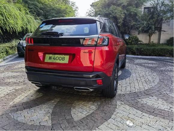 我是比较喜欢新4008的外观的。首先新狮标就比较吸引我,与无边框炫黑点阵格栅融为一体,透露着豪华感。“7”字型,仿佛一面旗帜的前大灯组合则极具辨识度。新4008的车尾也很精致动感——炫黑下压的尾翼有很强的运动感,三列纵排的3D狮爪式LED尾灯与长方形排气管上下呼应,视觉感受十分协调、完整。