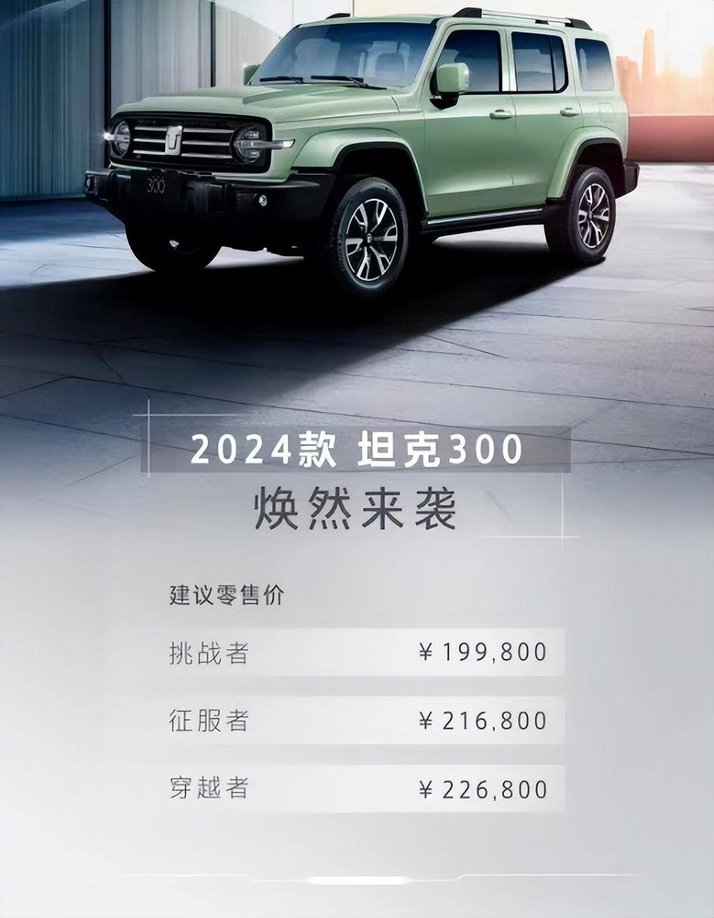 在其他方面,坦克则进行了一些比较实用的升级,包括四门车窗一键升降,车辆远程控制可控制方向盘加热,新增一个50瓦手机无线充电位,标配原厂高速ETC,并换装了穿透力更强的蜗牛喇叭。相应的,2024款车型也较老款提价1000元,至于值不值就要看消费者们怎么看了。
