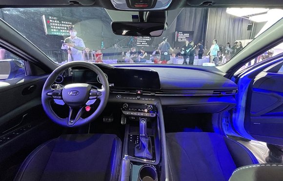伊兰特N全面黑化的车头和前格栅点缀的N字标识明显将其与一般的家庭用车区别开来,除此之外,花瓣形轮圈还加入了红色刹车卡钳,配备了245/35 R19的米其林PS4系列轮胎,车尾粗壮的双边共两出的排气与黑色尾翼的搭配。虽然伊兰特N的内饰整体沿用了普通版车型的设计,但增加了大面积的皮革和软材质包裹以及包裹性较强的运动座椅,并采用了N系列专属的三辐式方向盘,总体而言,伊兰特N的内外设计成功的营造了炸裂级的运动化气场。