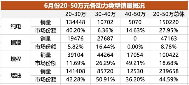 即便如此,到了今年6月份,中国品牌在20-50万元市场的份额也已经接近46%——已经和海外品牌非常接近。