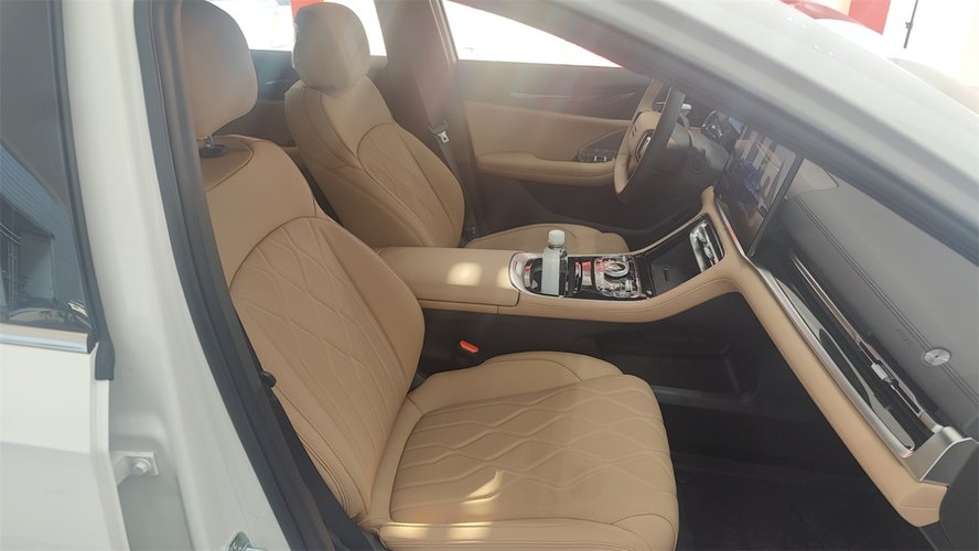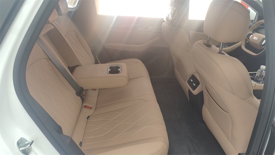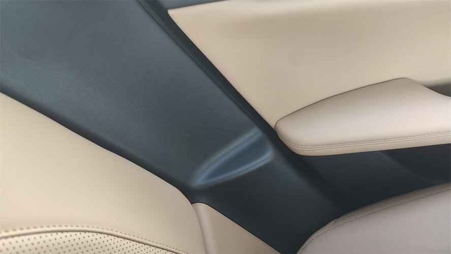 座椅的仿皮面料很出色,不但质地柔软,而且手感的细腻程度,和传统的半苯胺真皮的差距已经很小了。填充的厚度也足够,而且有三个配置是带有前排座椅的加热和通风的。人机设定方面,座椅的最低点处在一个比较均衡的位置,既有一定程度的半躺姿势带来的低重心效果,又能兼顾前方的视野。唯一的小遗憾在于安全带高度无法调节。