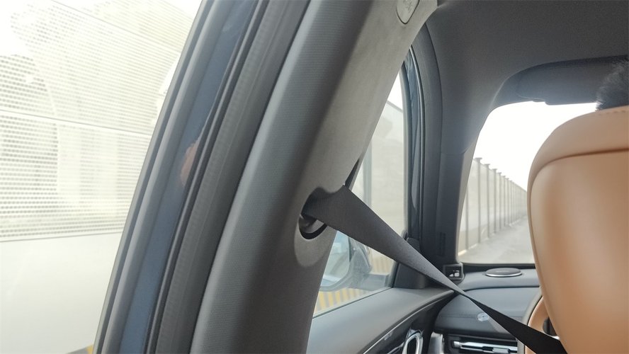 不过,后排座椅也有一些“穿帮”的地方。首先,坐垫的角度比较平,有点撑不住大腿;其次,座椅外侧的门板有明显的突起造型部分,而且没有覆盖软包,后排满员时外侧的乘客容易被磕到;另外,后排外侧的安全带固定位置,直接位于靠背内侧,座椅靠背翻折后再收回时,容易压住安全带。