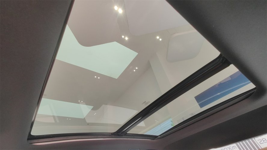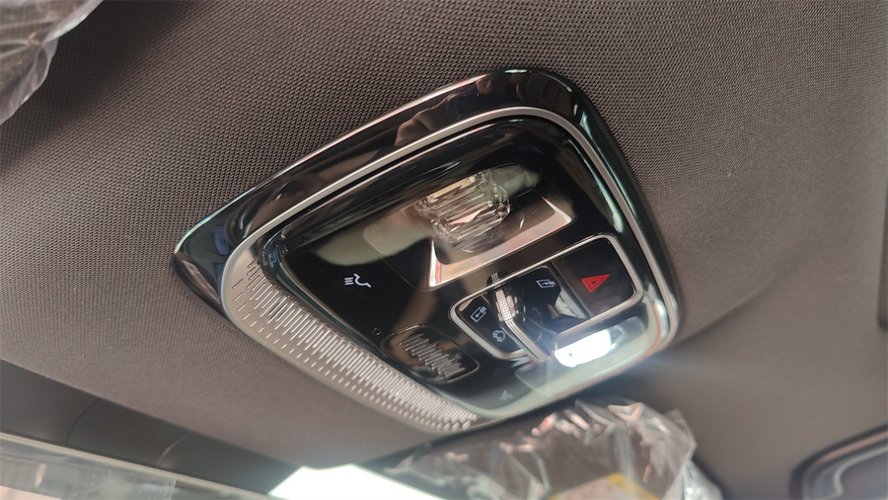 全景天窗的面积非常大,不但可以开启,而且带了电动遮阳帘,算是不少人心心念念的“顶配”天窗了。而且顶棚留下了操作天窗的实体拨杆。甚至顶棚区域的面板都用了黑色的烤漆面板,附带镀铬边框。在这种可见度不算太高的部位也没有缩减用料,还是挺难得的。