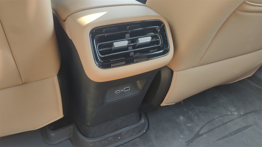 另外,座椅前方的出风口上,预留了两个USB口,而且参考了比亚迪的做法,一个是Type-A格式,另一个是Type-C格式,照顾到了新老款手机不同的充电需求。